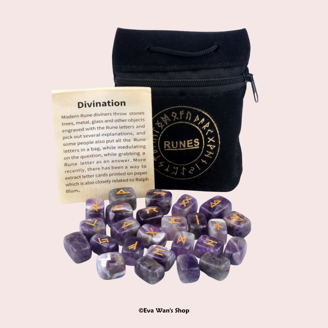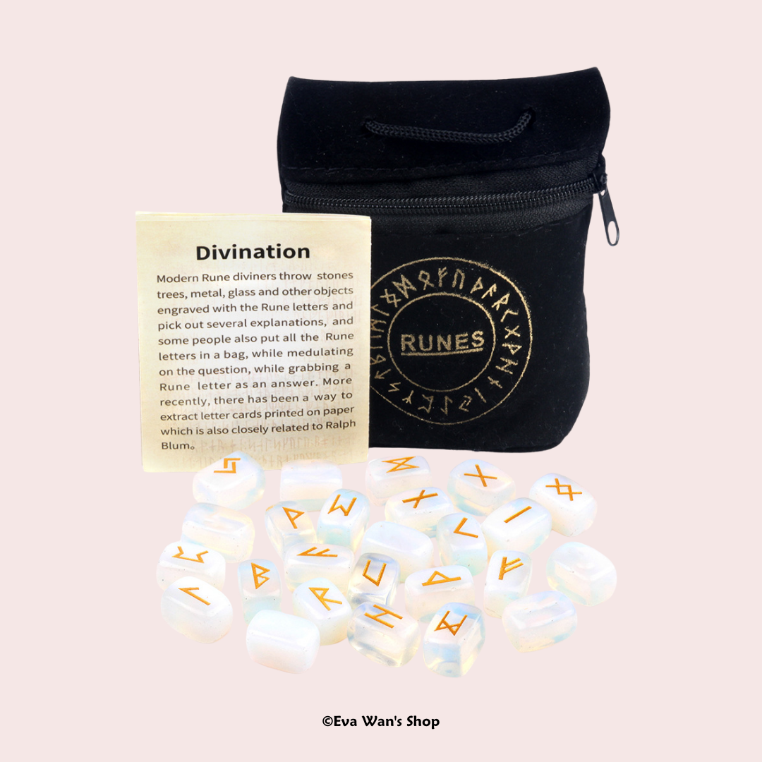 Cada piedra está grabada con símbolos rúnicos que conectan con la intuición, la luna y la sabiduría oculta. Es un amuleto perfecto para altar, lecturas de tarot, trabajos energéticos o simplemente como talismán diario para atraer claridad, equilibrio y guía.